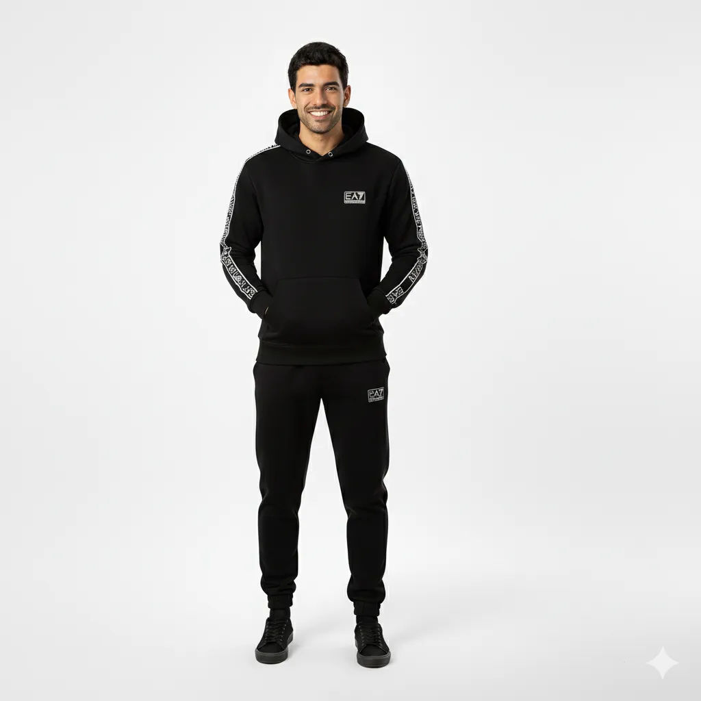 Conjunto Bordado Adulto | EA7 Franja | Negro